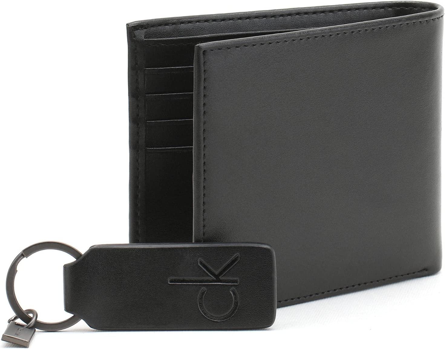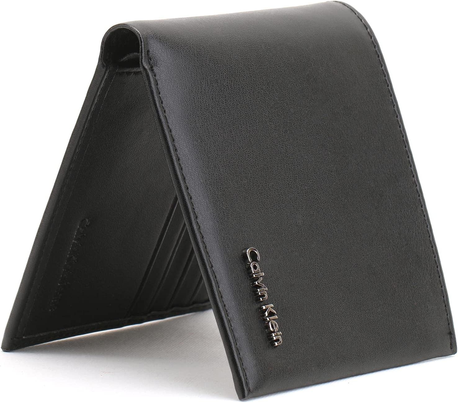 محفظه كالفن كلاين للرجال ثلاث قطع، جلد ، اسود